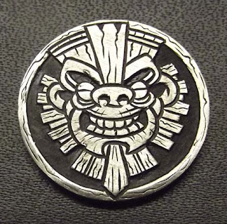 Hand Carved Buffalo HOBO NICKEL "HAWAIIAN TIKI MASK" by Shane Hunter